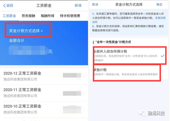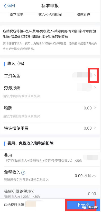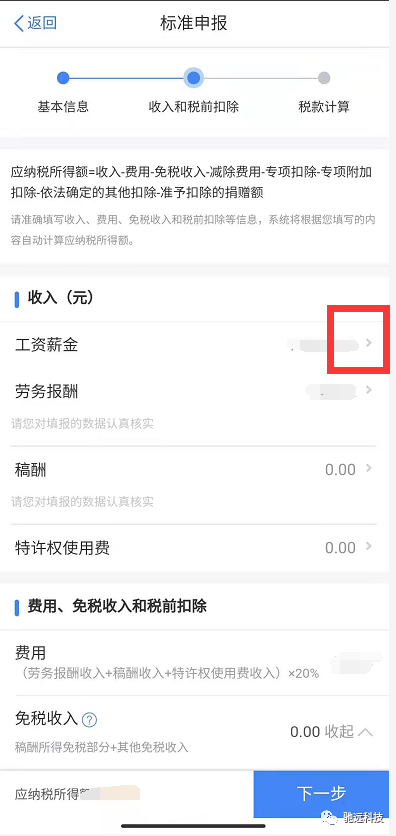 系统会让您选择奖金计税方式(两种计税方式均可,可以尝试都点击下,并计算税款,选择最优的退税方式),然后返回收入和税前扣除页,点击下一步