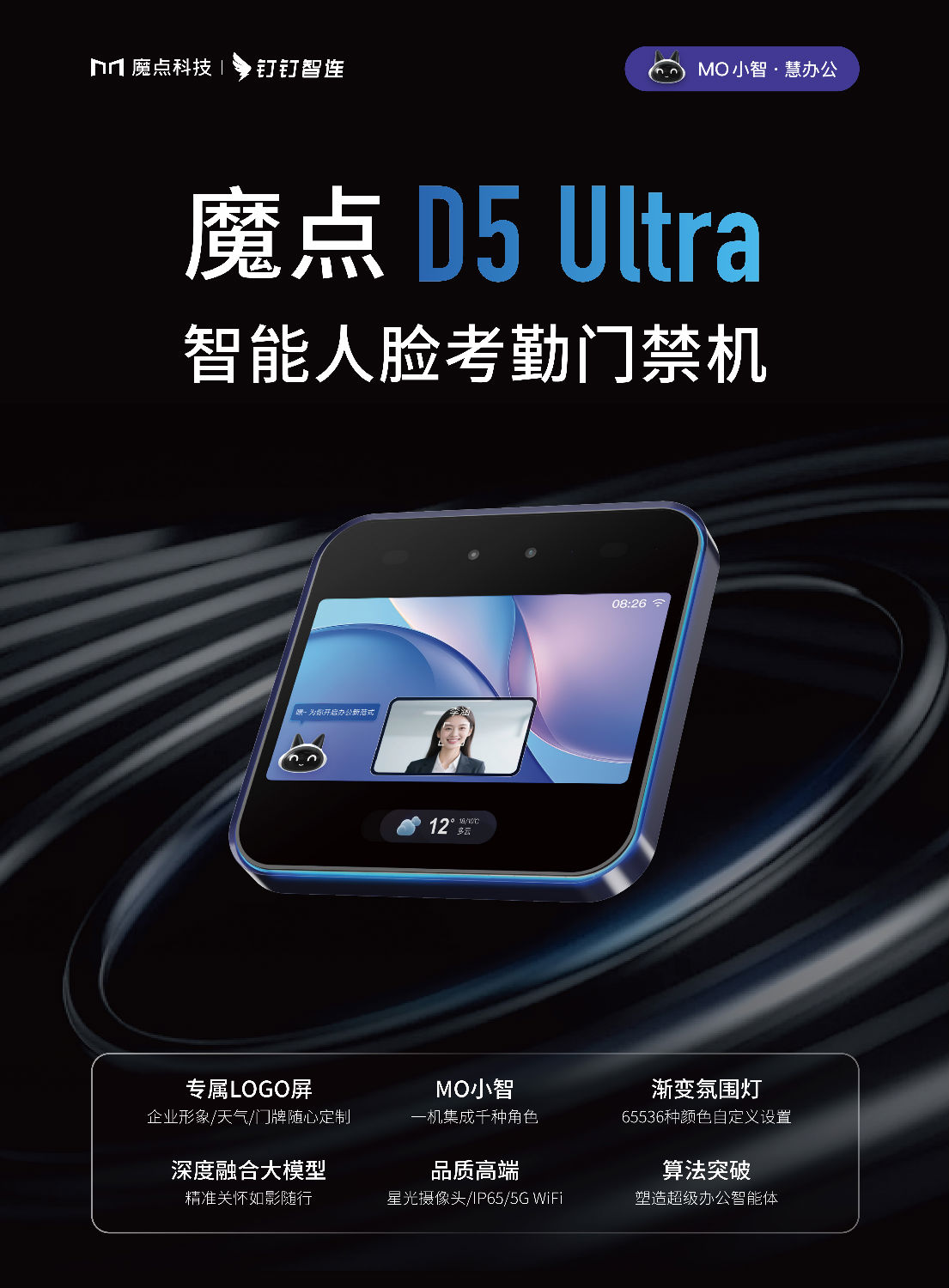 钉钉魔点D5 Ultra智能人脸考勤门禁机